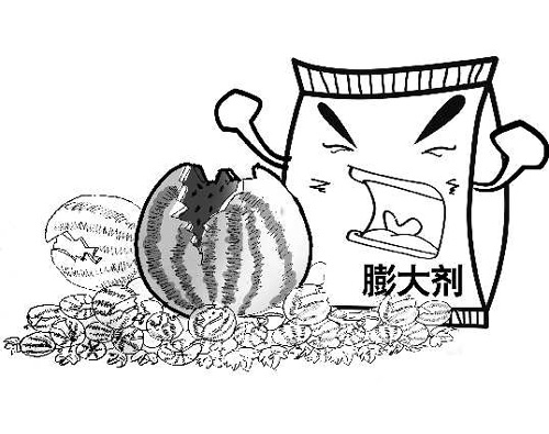 江蘇鎮(zhèn)江丹徒區(qū)延陵鎮(zhèn)大呂村40多畝西瓜大棚,就像布下了“地雷陣”,已結(jié)滿瓜藤的大小西瓜,還沒有成熟就一個個炸裂開來,有的炸得四分五裂,有的炸得像一朵花。其他瓜農(nóng)的數(shù)十畝西瓜同樣開始滿地“開花”。有瓜農(nóng)和專家指出,瓜農(nóng)施用的“膨大增甜劑”是造成爆瓜的原因。 膨大劑,化學(xué)名稱叫細(xì)胞集動素,屬于激素類化學(xué)物質(zhì),對植物可產(chǎn)生助長、速長作用,對人體的危害主要是神經(jīng)系統(tǒng)的危險,能造成兒童腦炎,發(fā)育不良,癡呆等。此外,使用膨大劑后的果蔬味道變淡,吃起來口感不好,也不利于長時間儲藏。 吉林大學(xué)軍需科技學(xué)院食品質(zhì)量與安全專業(yè)教授徐克成認(rèn)為:膨大劑按規(guī)范使用是無毒害作用的,但是如果濫用、大劑量使用膨大劑,是有潛在風(fēng)險的。我國自引進(jìn)以來,沒有明確的規(guī)范劑量。很多農(nóng)戶為了利益大量施用膨大劑。農(nóng)產(chǎn)品檢驗機(jī)構(gòu)不會檢測這項指標(biāo)。