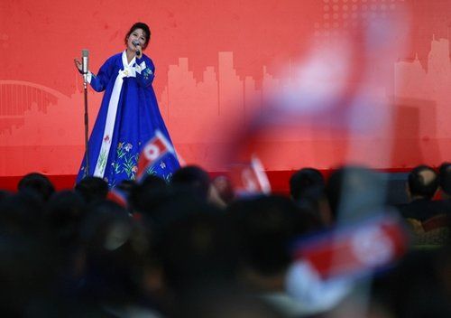 昨日,朝鮮的“金達(dá)萊”也在世博園中綻放,朝鮮平壤藝術(shù)團(tuán)在世博園亞洲廣場(chǎng)和世博中心紅廳中上演了兩場(chǎng)精彩演出,為世博游客帶來歡樂。
